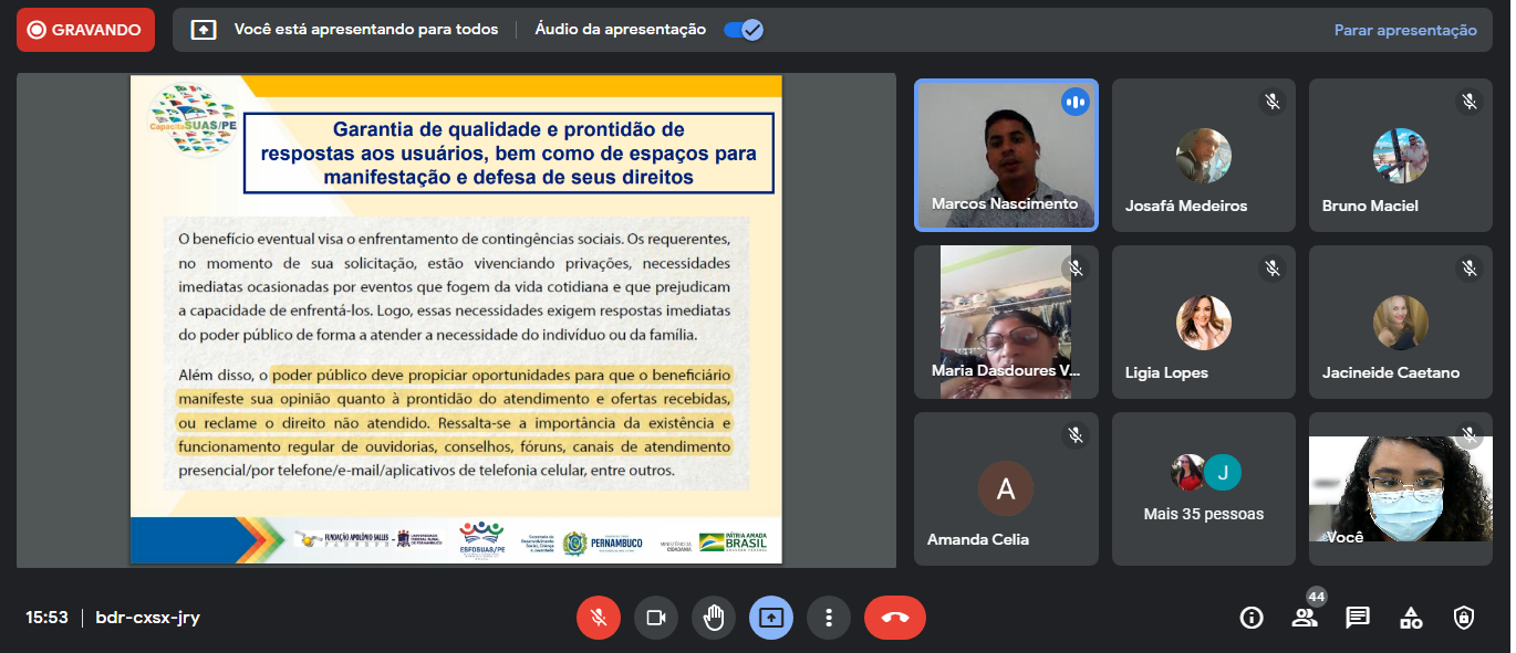 Polo: A prioridade é participar os/as trabalhadores/as da Assistência Social do Estado de Pernambuco.