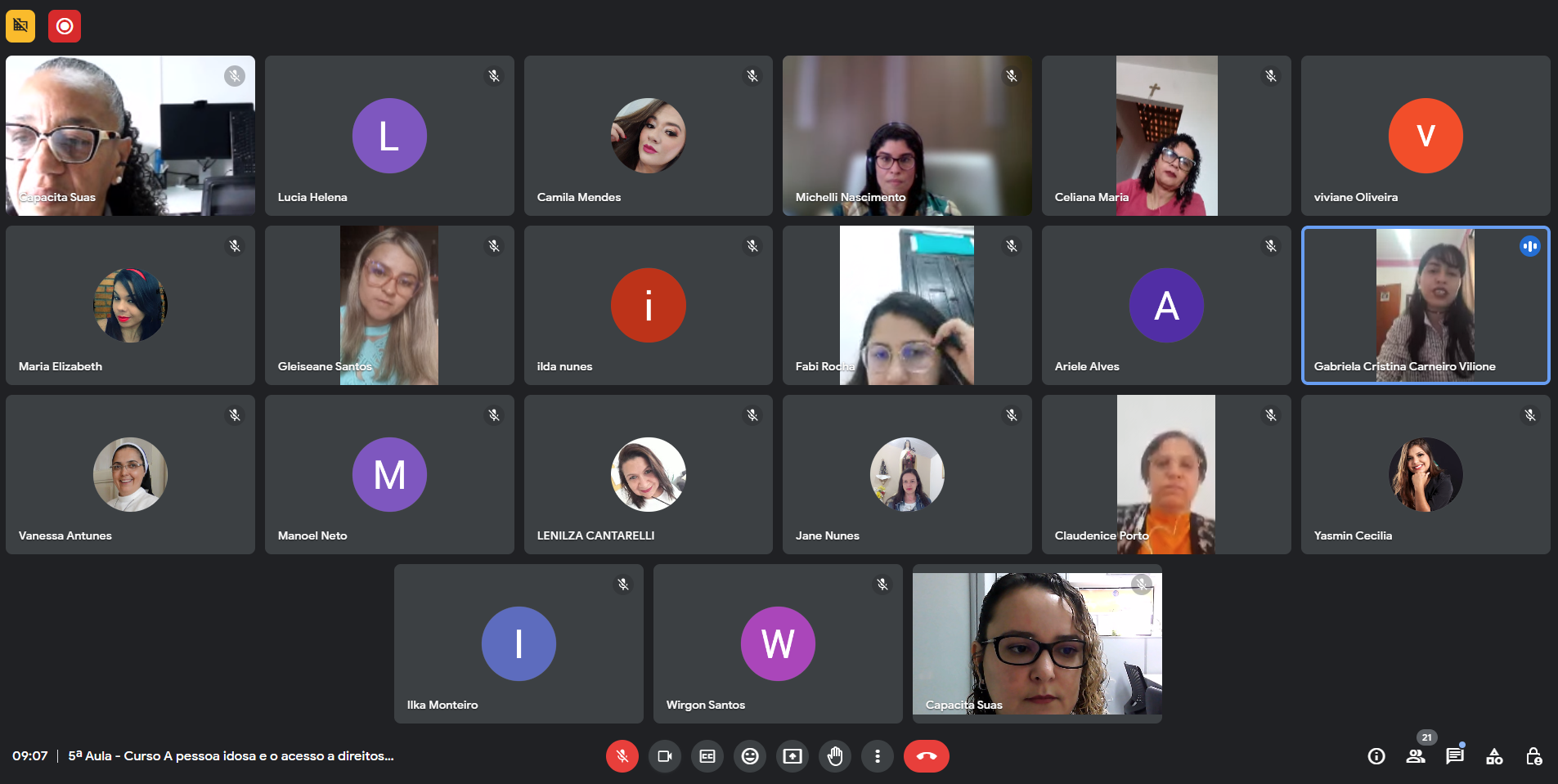 Carga horária 20h: 15h síncronas (on-line) e 5h assíncronas (Classroom)