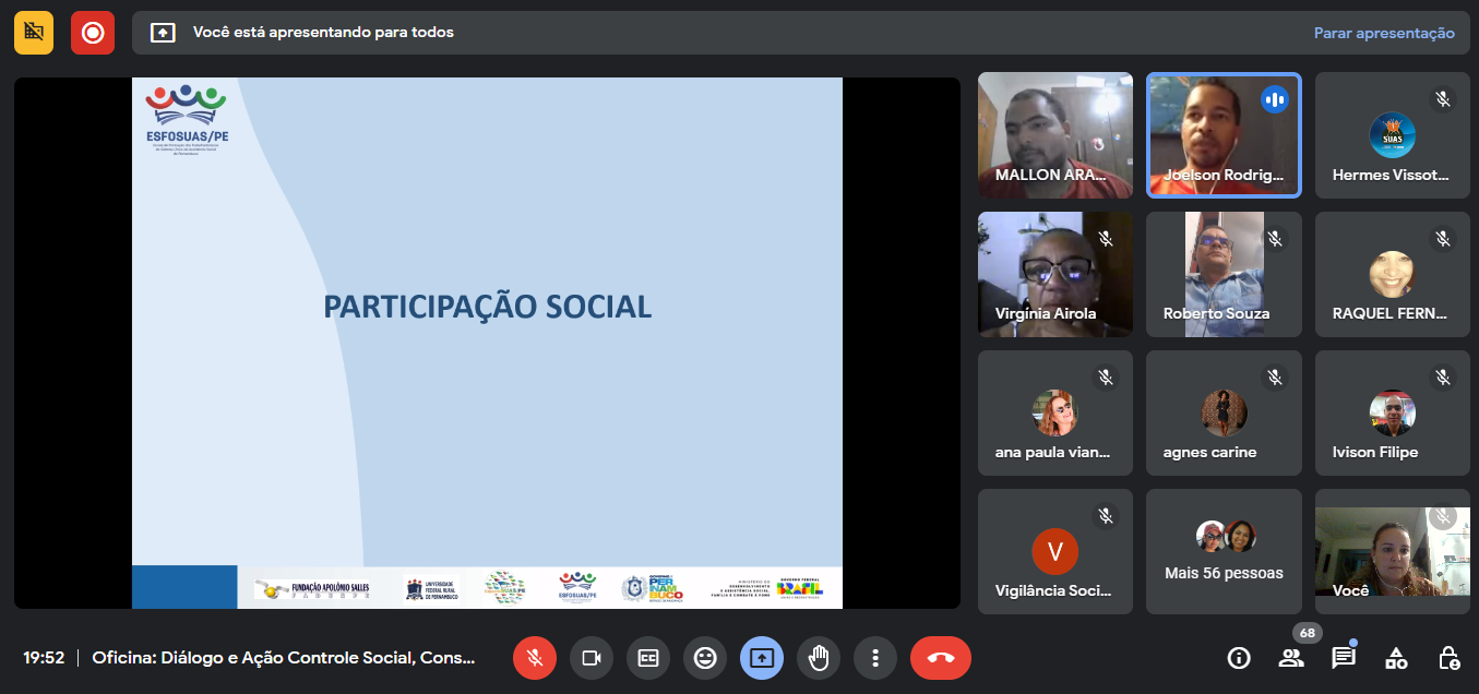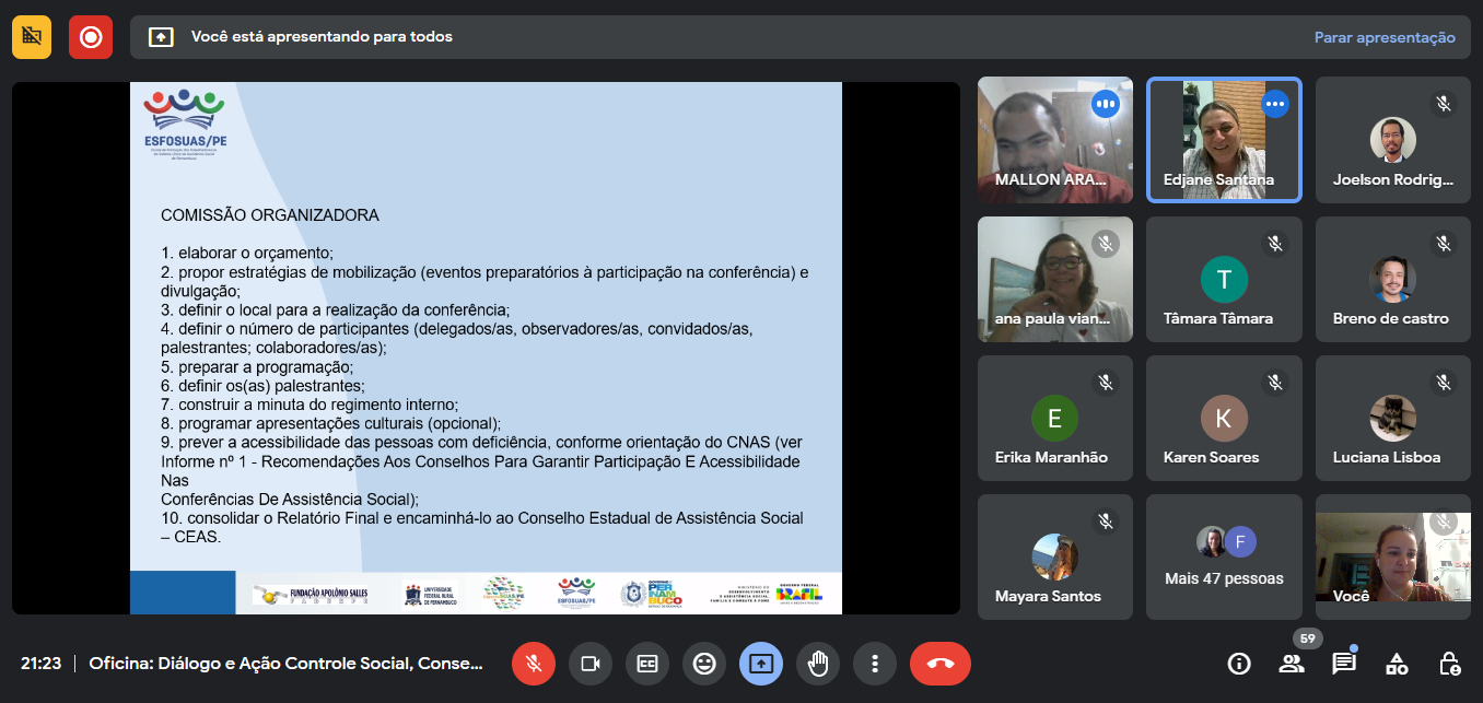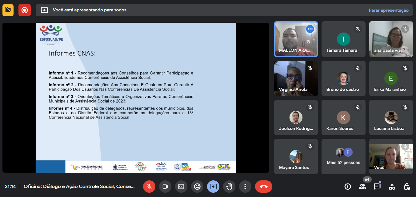 Temática: Controle Social, Conselhos e Conferências: reflexões e práticas para a reconstrução do SUAS que queremos