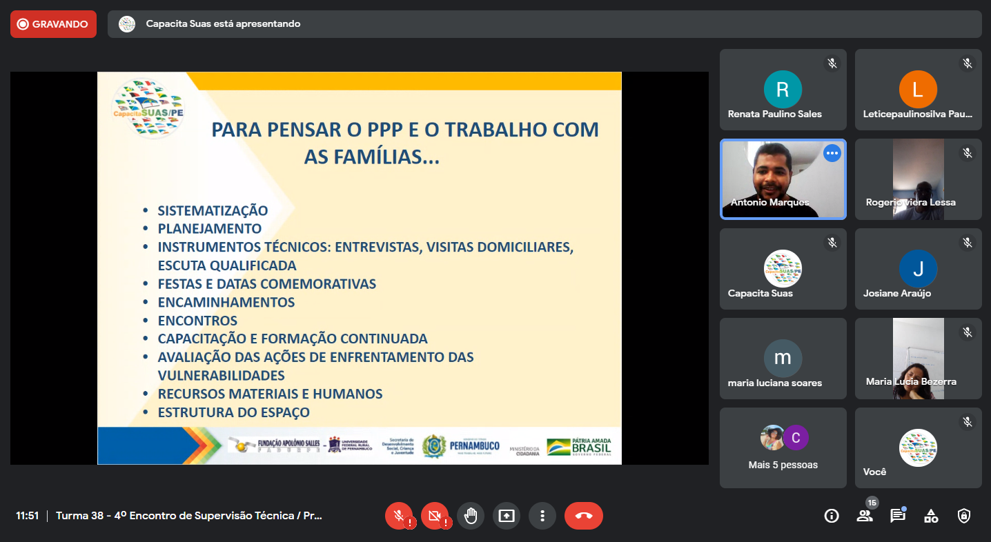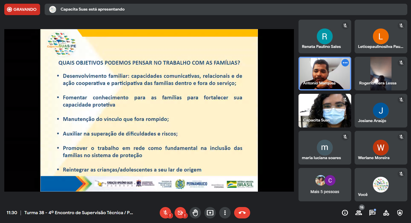 Público: Participação dos/as trabalhadores/as das Residências Inclusiva executadas pela Gerência de Proteção Social Especial de Alta Complexidade – GEPAC /Secretaria Estadual de Assistência Social – SEASS.