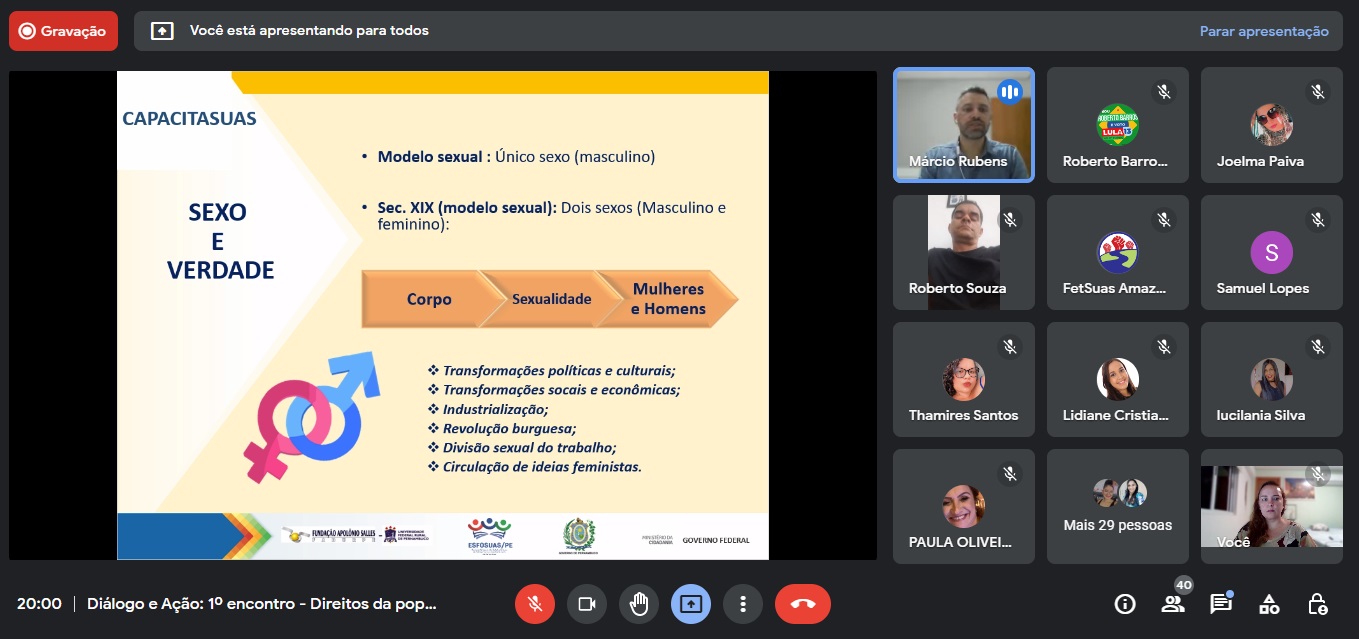 9 de novembro de 2022 Oficina: Diálogo e Ação Direitos da população LGBTQIA+ e o SUAS TURMA: 03 Temática: Direitos da população LGBTQIA+ e o SUAS Palestrante: Márcio Rubens – Professor CAPACITASUAS/PE Local: Google Meet Data: 08 de novembro de 2022 – Horário: 19h às 21h PreviousNext